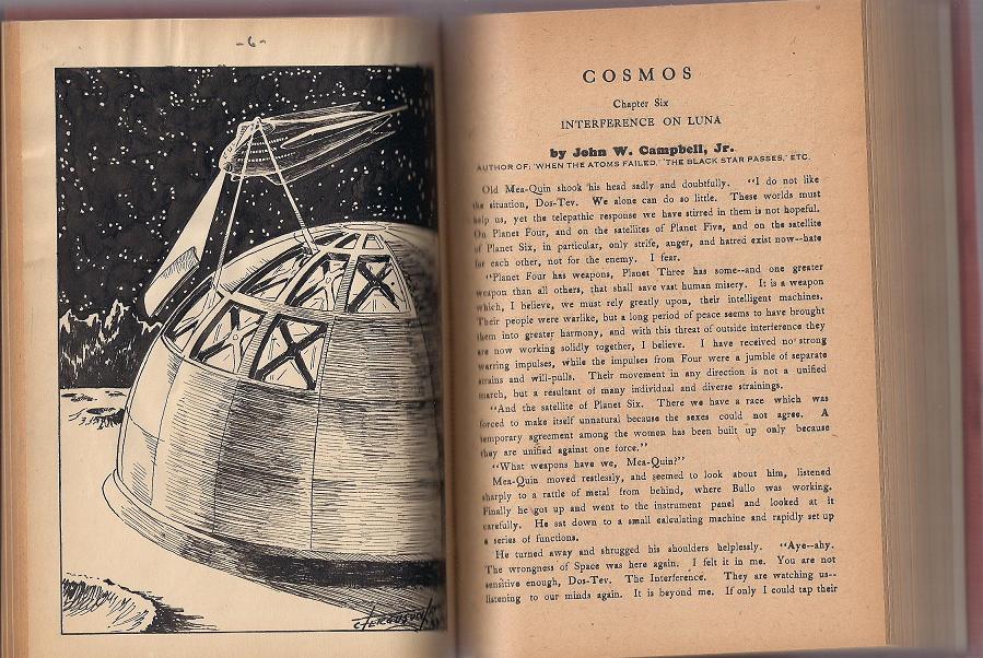 [Image from the collection of Robert Weinberg, from a bound volume of Cosmos created for the original editors. Illustration by Clay Ferguson.]