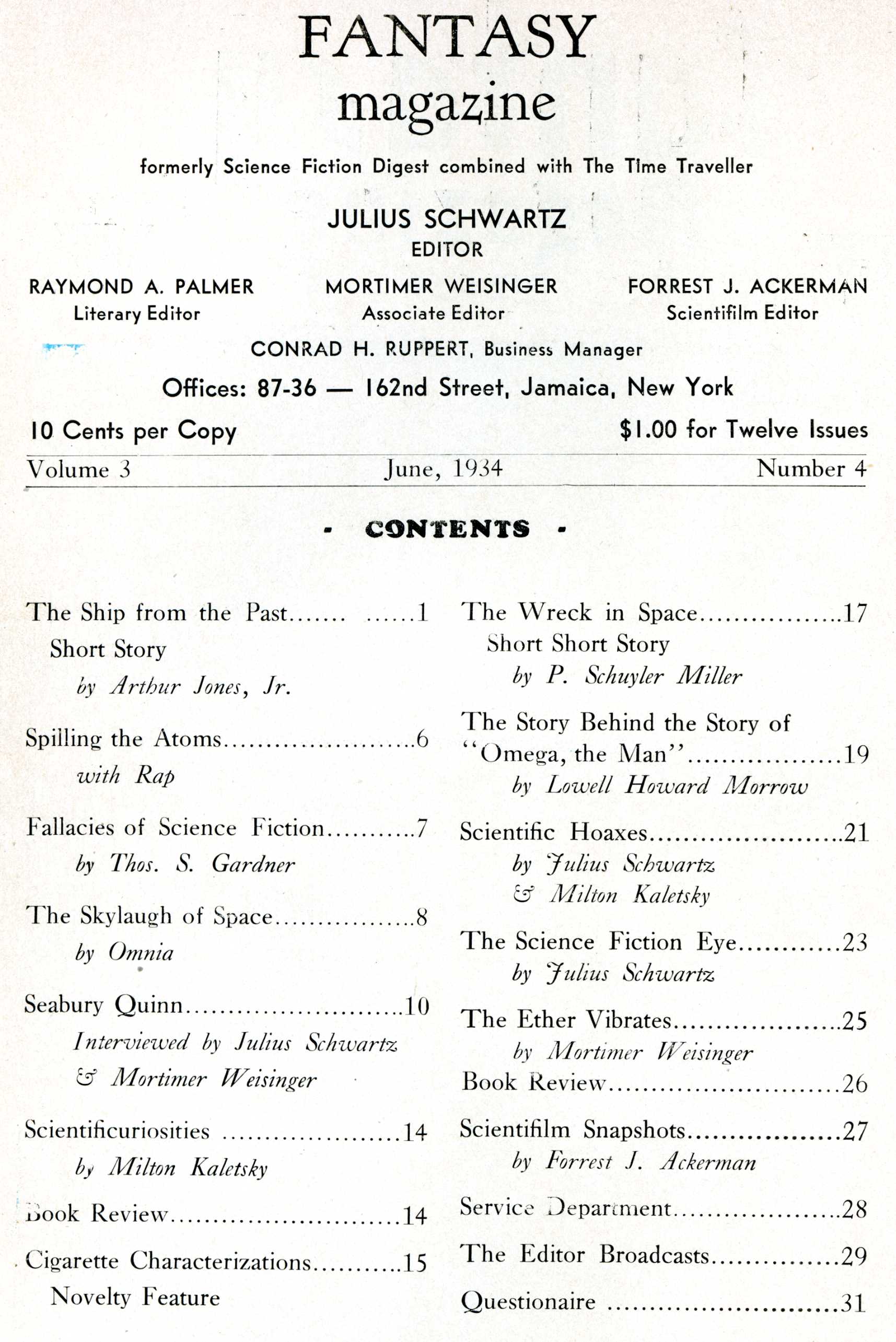 Fantasy is now in the most crucial period of its development. The depression is over. Prices are going up, work is becoming easier to find, and, in general, conditions are improving. With the aid of my good friends, Julius Schwartz, Raymond A. Palmer, Forrest J. Ackerman, Mortimer Weisinger, and Maurice Ingher, I was able to start the Science Fiction Digest in 1932 by the formation of the Science Fiction Digest Company. This is a co-operative organization formed only to publish our magazine. Several changes have been made since our start; Maurice Ingher was forced to drop out early because of other business, but otherwise the personnel of our organization remains the same,